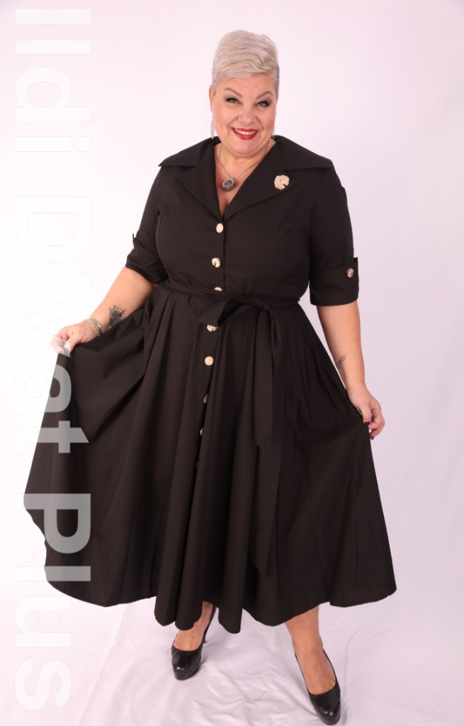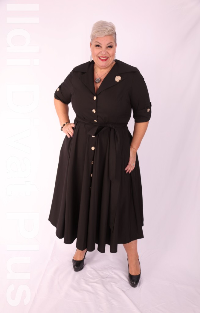 Maglen galléros gombos derekán szabott A vonalú ruha.