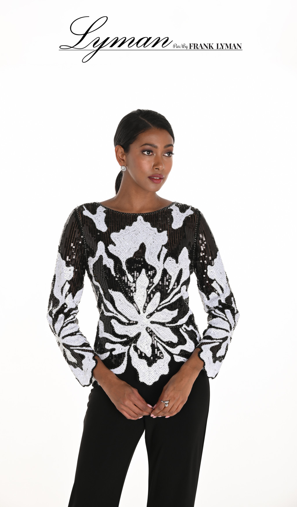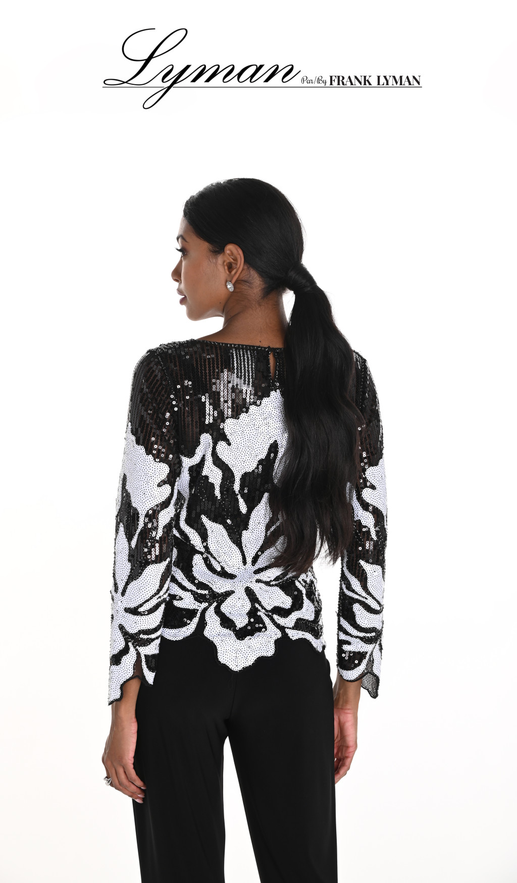 Frank Lyman fekete-fehér flitteres felső.