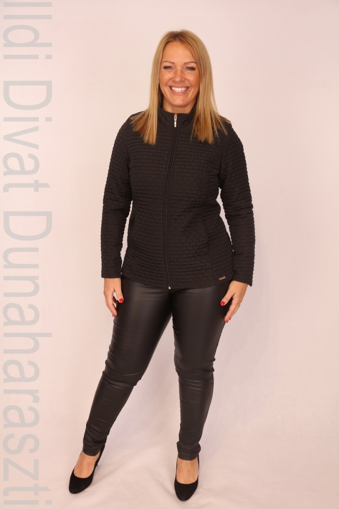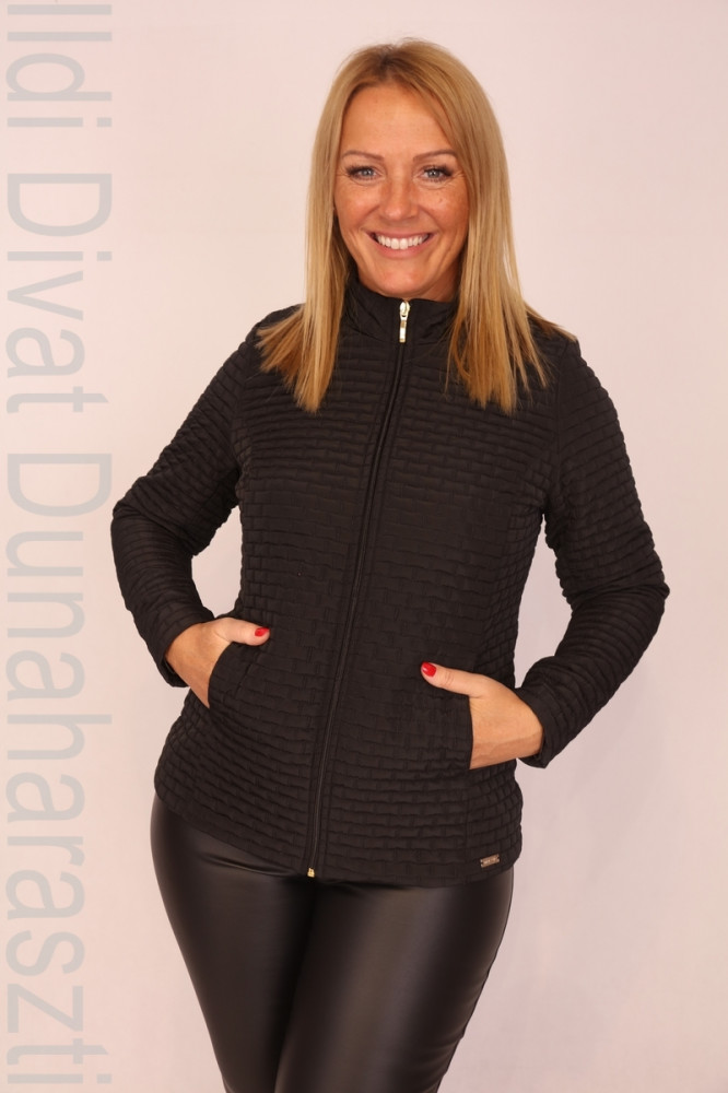 Mystic Day fekete színű, steppelt, álló nyakú, átmeneti sportosan elegáns kabát.