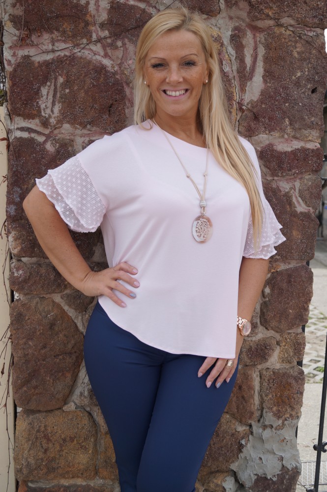 Mystic Day ekrü színű, ujján fodros, egyenes fazonú felső.