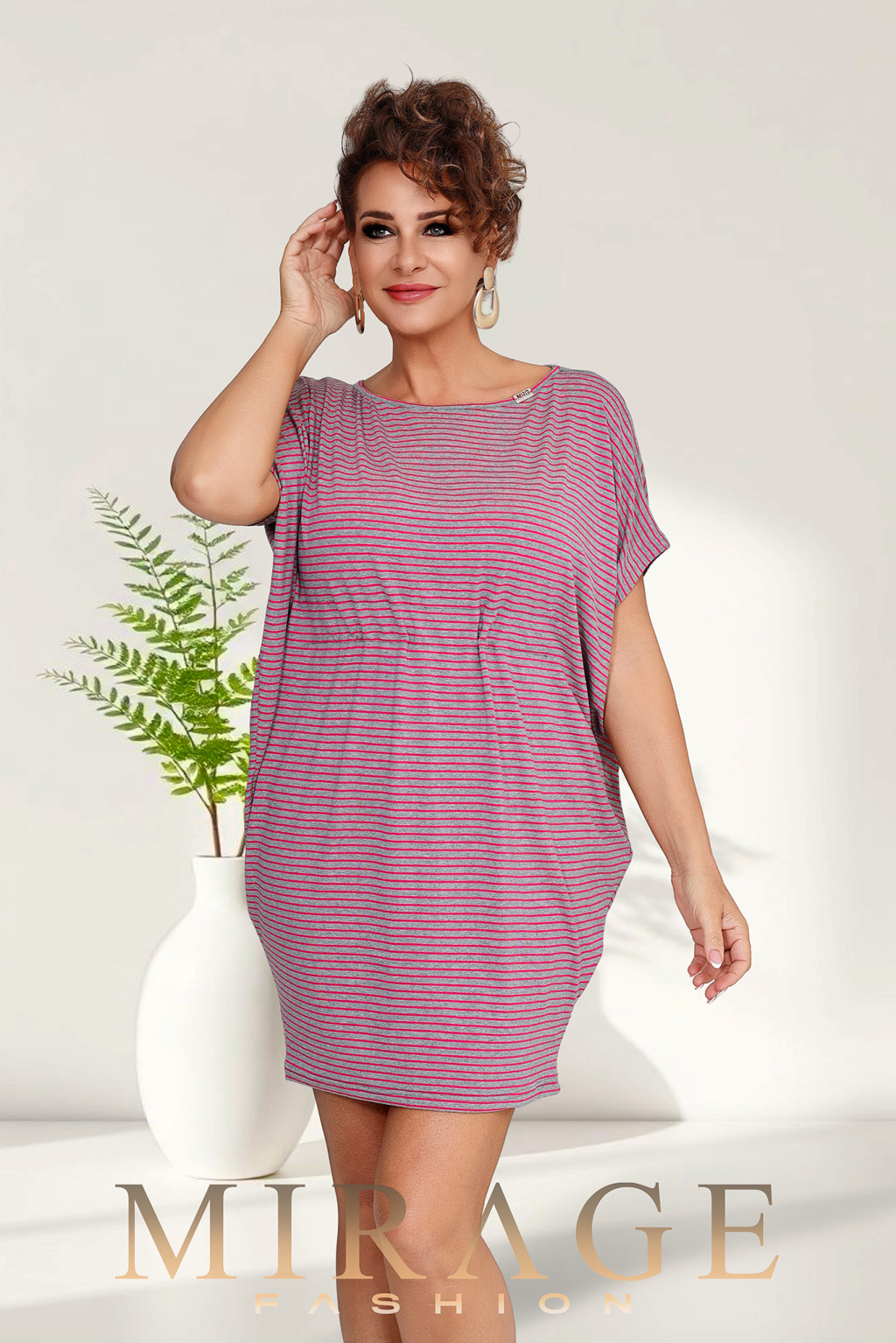 Mirage Fashion Szürke-Pink Csíkos Levendula Tunika