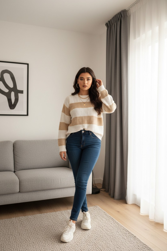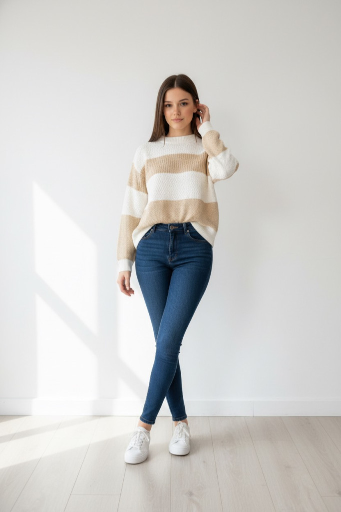 Micha ekrü -beige anyagában horgolt-kötött mintás felső.