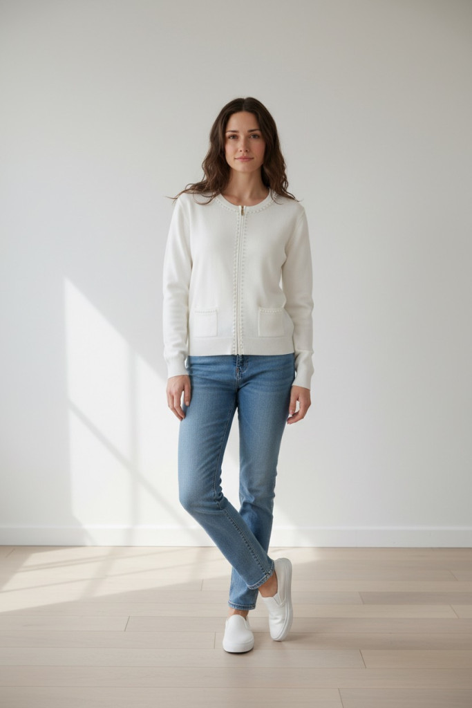 Micha fehér gyöngyös,zippes vékony kötésű kardigán.