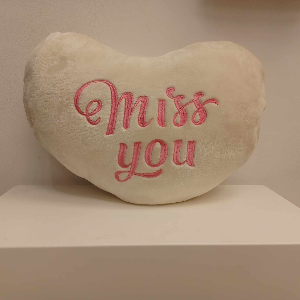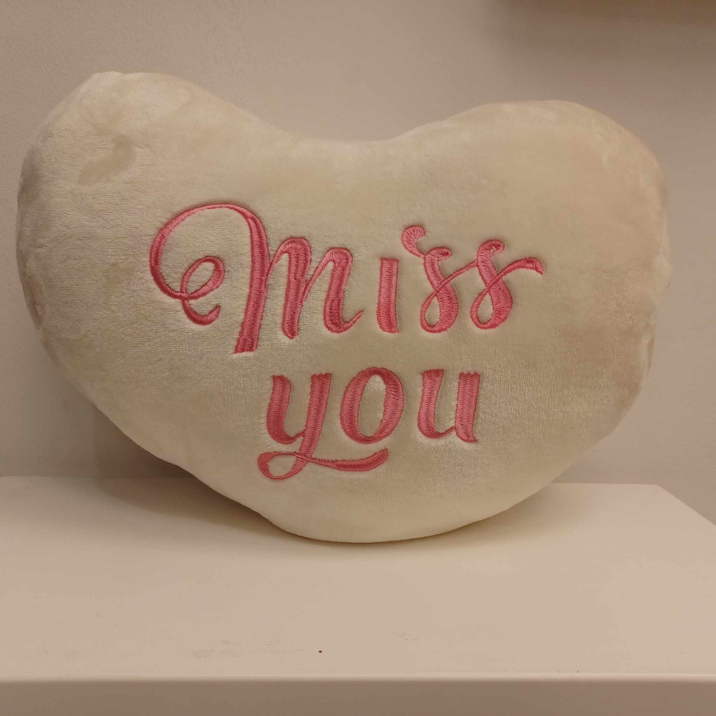 Poppy ekrü szívecskés Miss You hímzéses párna.