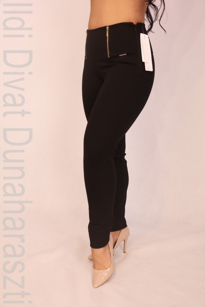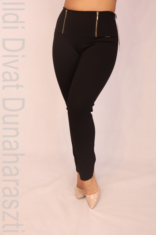 Rouge Avenue fekete színű, elején dísz cipzáros, puntó anyagú, szűk szárú nadrág.
