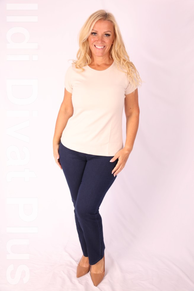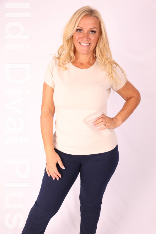 Latynka homok színű, kereknyakú karcsúsított fazonú felső.