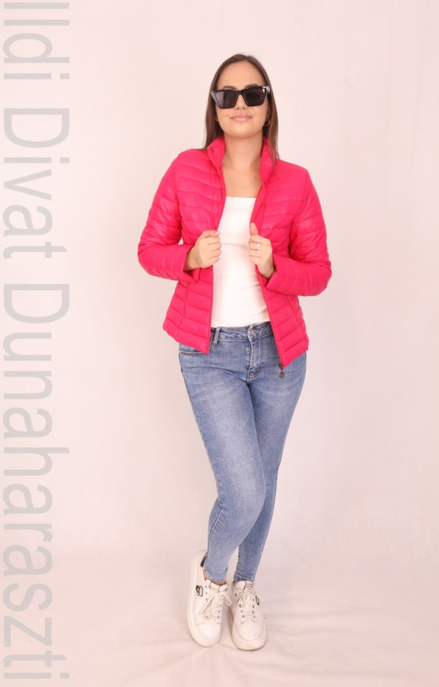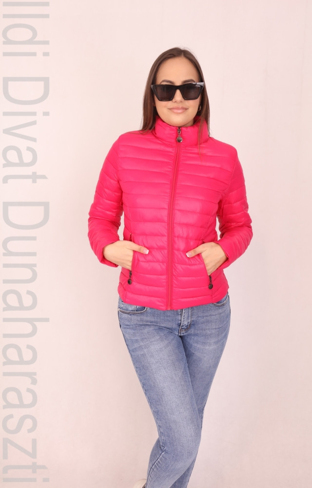 Spring Edition magenta színű, steppelt anyagú, álló nyakú, zsebes, karcsúsított fazonú kabát.