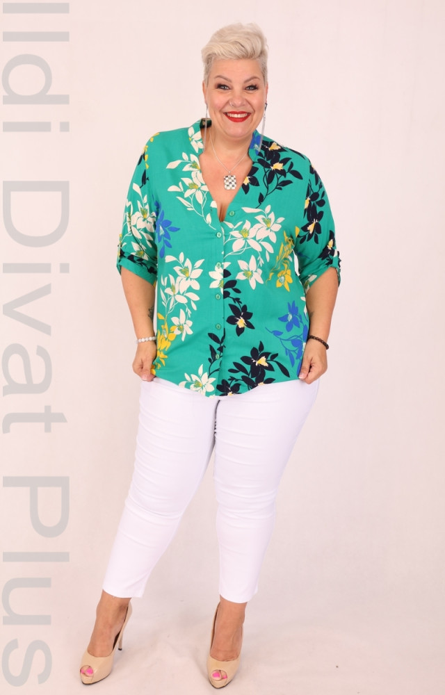 Eseoglu zöld alapon virágmintás, gombos, lezser fazonú ing.